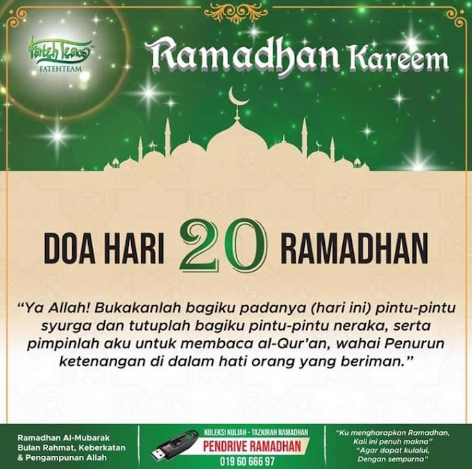 "Ya Allah ! Bukakanlah bagiku padanya (hari ini) pintu-pintu syurga dan tutuplah bagiku pintu-pintu neraka, serta pimpinlah aku untuk membaca Al-Quran, wahai Penurun ketenangan di dalam hati orang yang beriman"
